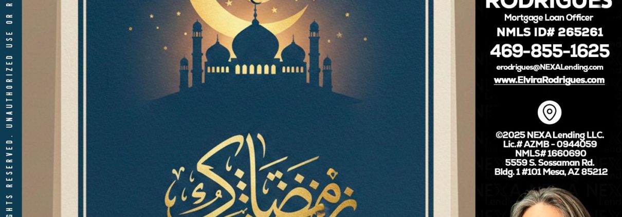 HAPPY RAMADAN - Elvira Rodrigues -Mortgage Loan OfficerHi, my name is Elvira Rodrigues. I’m a Loan Officer with NEXA Lending LLC., offering personalized mortgage solutions, fast customized quotes, great rates and service with integrity.