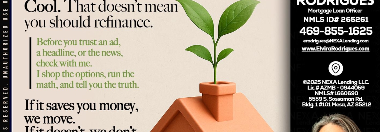 Hi, my name is Elvira Rodrigues. I’m a Loan Officer with NEXA Lending LLC., offering personalized mortgage solutions, fast customized quotes, great rates and service with integrity.