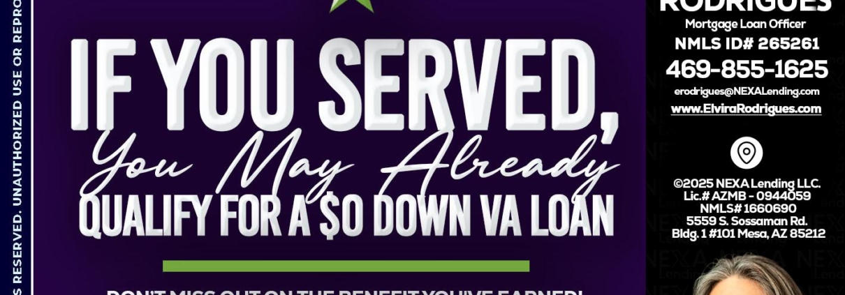 IF YOU SERVED - Elvira Rodrigues -Mortgage Loan OfficerHi, my name is Elvira Rodrigues. I’m a Loan Officer with NEXA Mortgage LLC., offering personalized mortgage solutions, fast customized quotes, great rates and service with integrity.