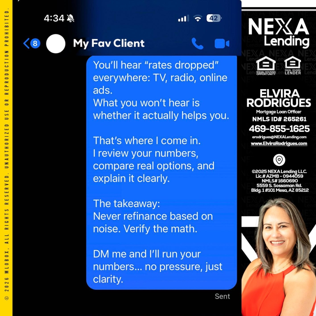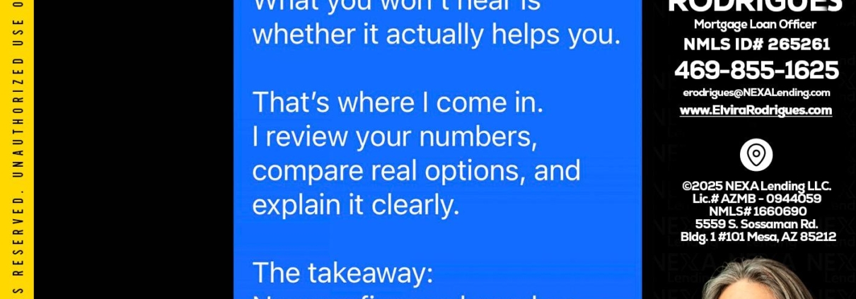 Hi, my name is Elvira Rodrigues. I’m a Loan Officer with NEXA Lending LLC., offering personalized mortgage solutions, fast customized quotes, great rates and service with integrity.