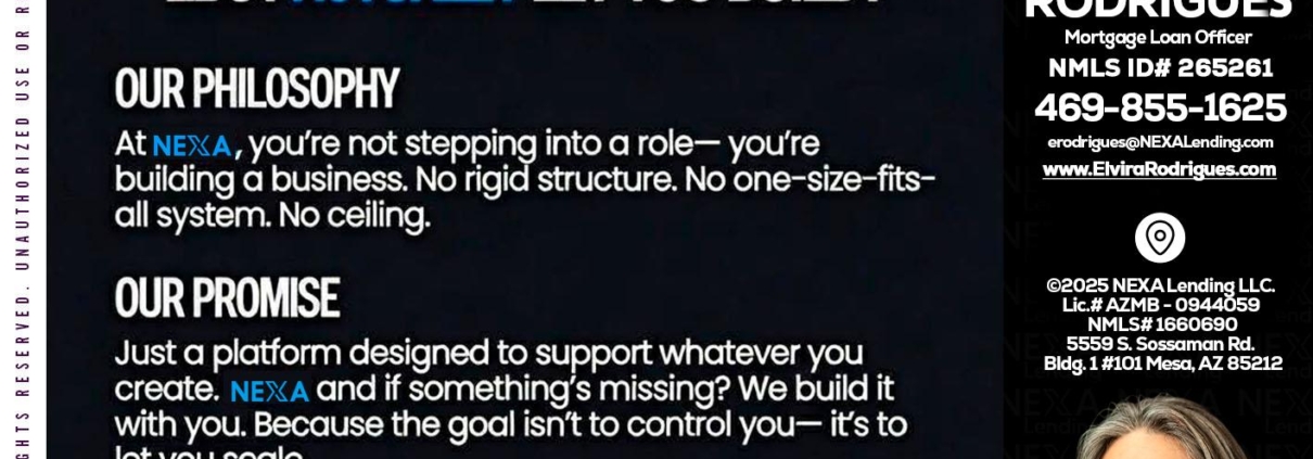 Hi, my name is Elvira Rodrigues. I’m a Loan Officer with NEXA Lending LLC., offering personalized mortgage solutions, fast customized quotes, great rates and service with integrity.