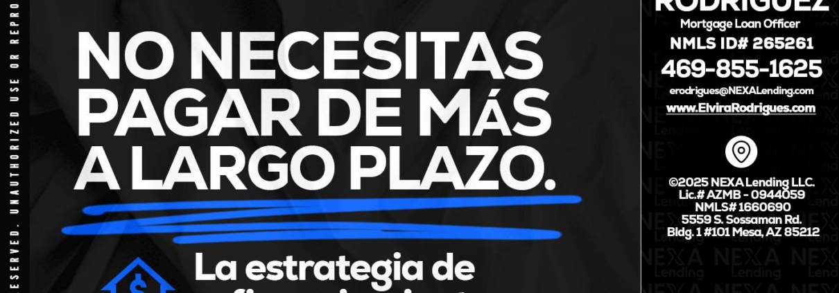 Hi, my name is Elvira Rodrigues. I’m a Loan Officer with NEXA Lending LLC., offering personalized mortgage solutions, fast customized quotes, great rates and service with integrity.