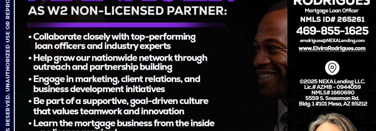Hi, my name is Elvira Rodrigues. I’m a Loan Officer with NEXA Mortgage LLC., offering personalized mortgage solutions, fast customized quotes, great rates and service with integrity.