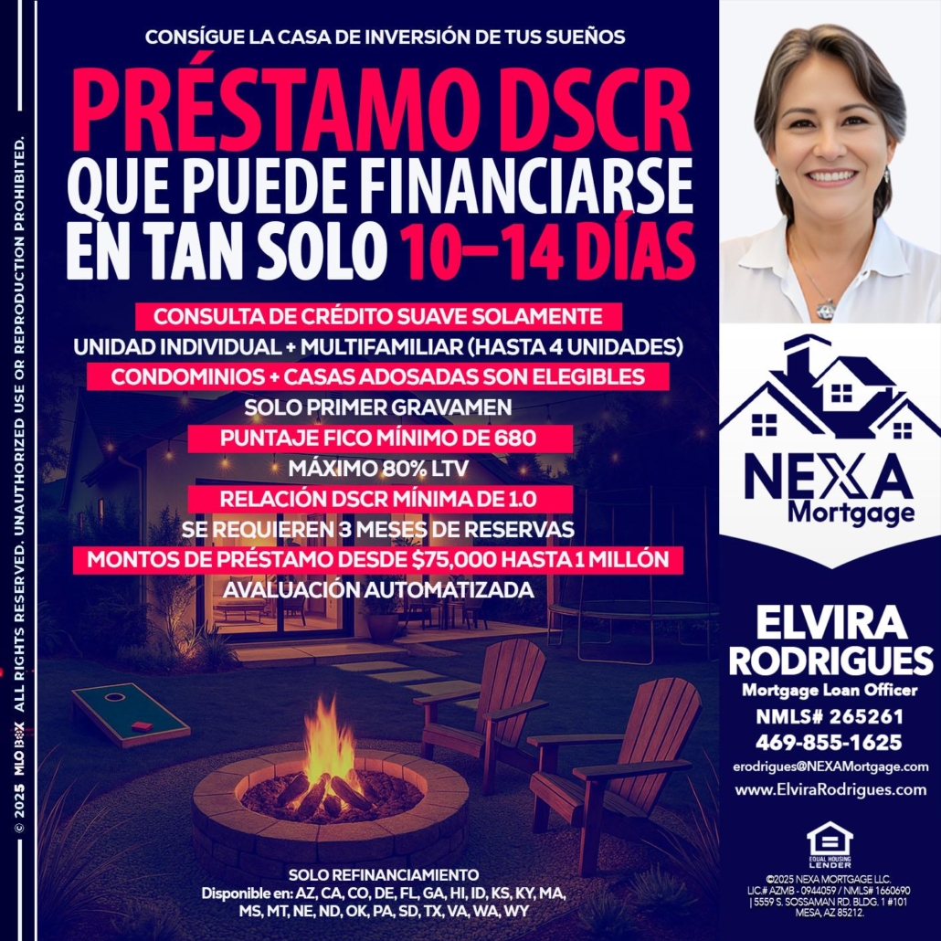 Hi, my name is Elvira Rodrigues. I’m a Loan Officer with NEXA Mortgage LLC., offering personalized mortgage solutions, fast customized quotes, great rates and service with integrity.